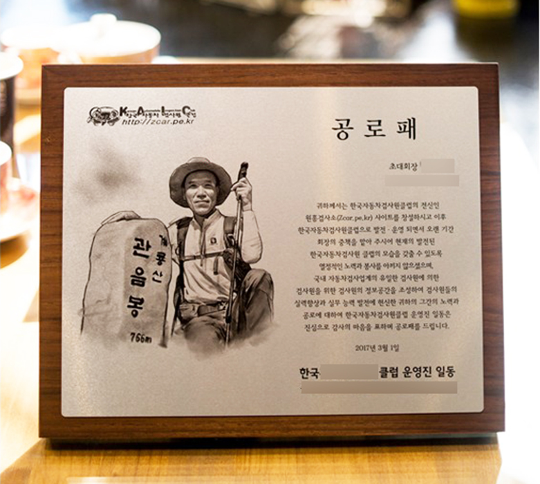 2호(24x30 cm) 가로형으로 제작된 동호회 공로패입니다.