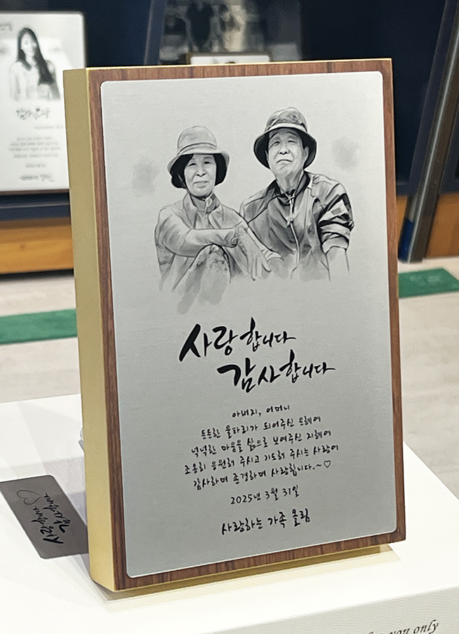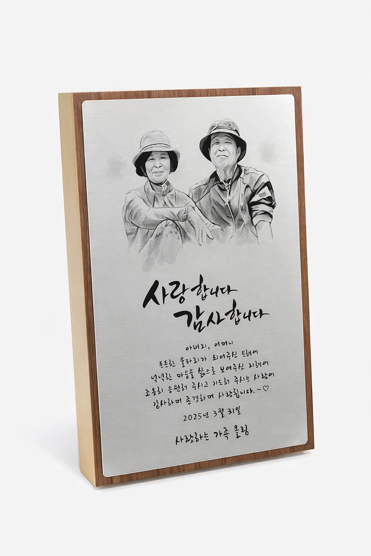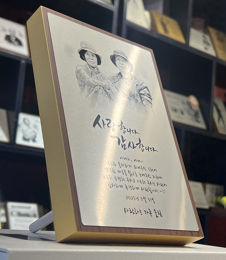4호(21x14cm) 세로형으로 제작된 부모님 감사패입니다.